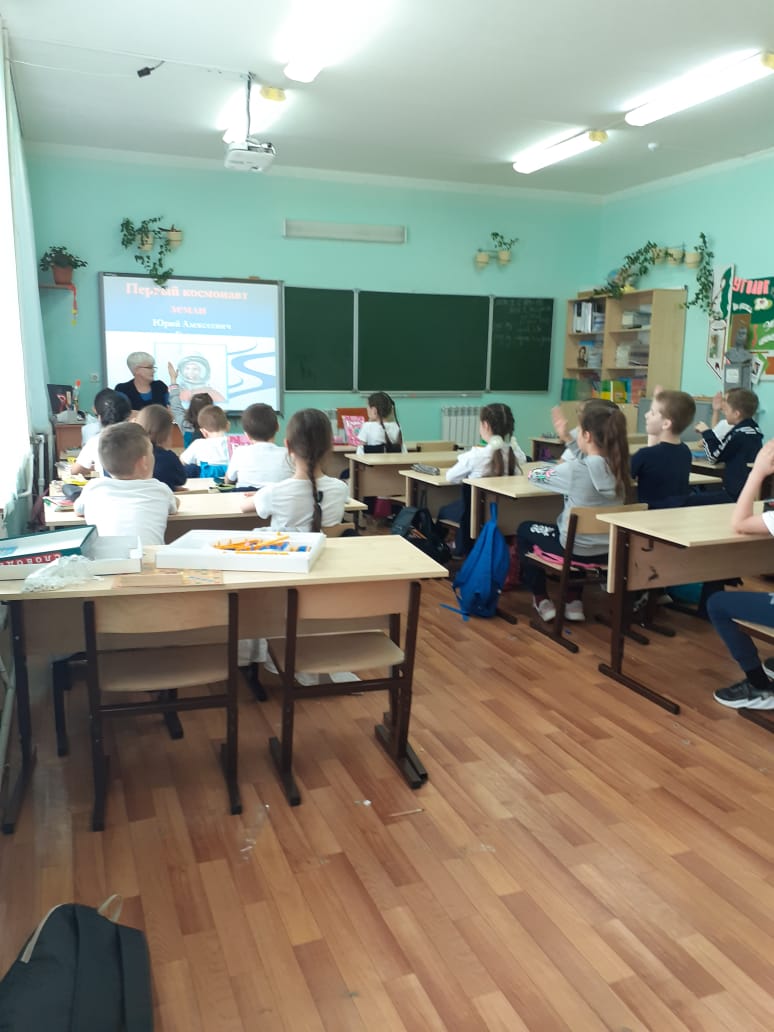 12 апрель көнне педагог- китапханәче Чеботарева Н. Н.4Б сыйныфында ( сыйныф җитәкчесе Якимова А. П.) "Космоска юл Җирдән башлана" дигән мультимедиа уенын үткәрде. Өч команда "космос белгече" исеме өчен ярыштылар. Ә фойеда "Кеше галәмне ача" дигән күргәзмә оештырылган иде".