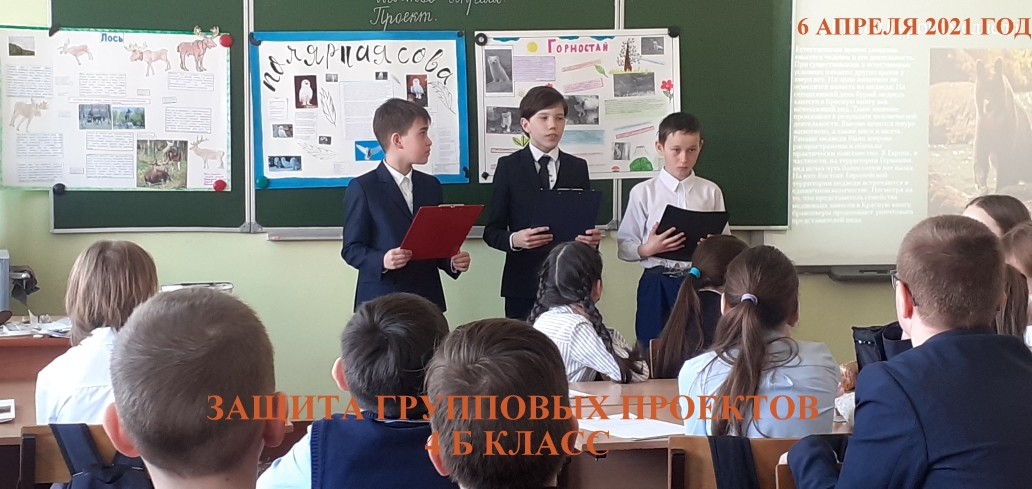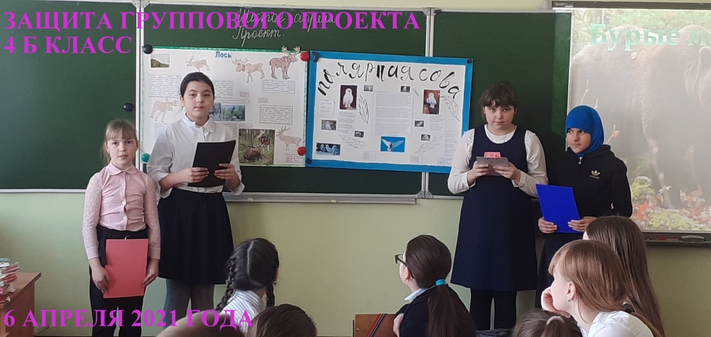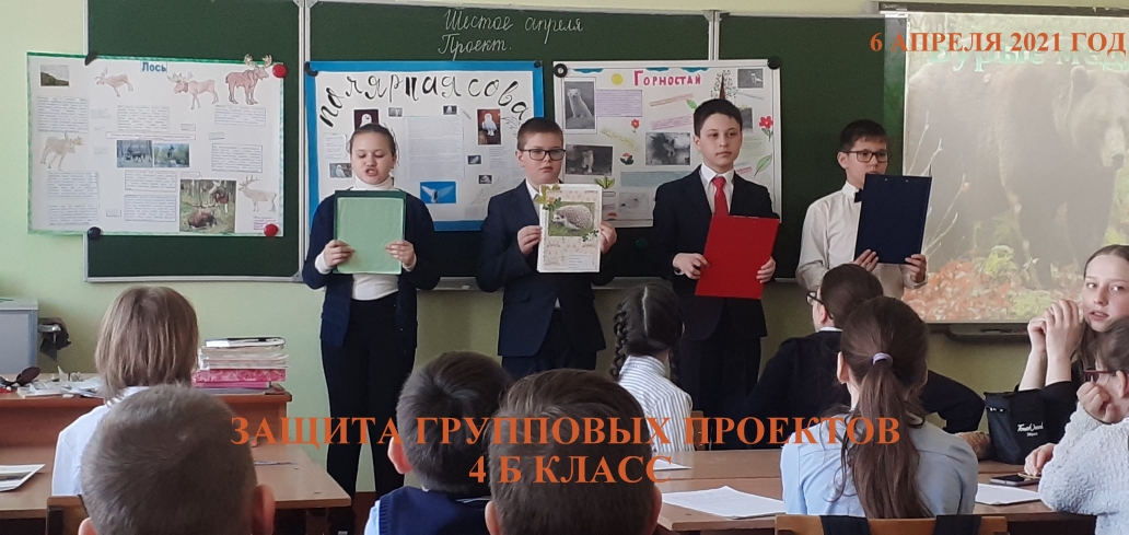 В 4Б классе проекты защищали 5 групп. Проекты были посвящены животным: "Лоси", "Белые совы", "Горностай", "Бурый медведь", "Ежи". Проекты были интересными, содержательными. Ребята отлично подготовились, рассказывали наизусть, четко отвечали на вопросы одноклассников. Все достойно защитили проекты.Молодцы!