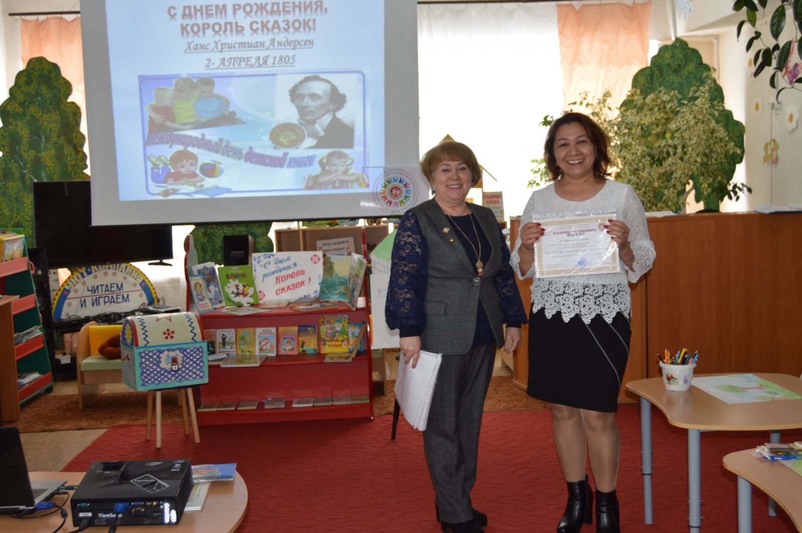 2нче апрель көнне Үзәк балалар китапханәсендә 3нче Б сыйныф укучылары (укытучысы Фалина Д.Г.) белән китапханә хезмәткәрләре Г. Х. Андерсен иҗатына багышланган «Туган көнегез белән, әкиятләр патшасы» дип исемләнгән чара үткәрделәр. Чараның беренче өлешендә викторина үткәрелде: балалар сорауларга җавап бирделәр , кроссворд чиштеләр, уйнадылар, рәсем ясадылар. Икенче, тантаналы өлешендә, 3нче Б сыйныф укучыларын туган тел һәм Халык бердәмлеге елына багышланган «тынычлыкка һәм татулыкка әкиятләр аша:туган телдә халык әкиятләре укыйбыз» Бөтенроссия акциясендә актив катнашканнары өчен дипломнар белән бүләкләделәр. Ә Дилбәр Гайсә кызына, җитәкче буларак, Рәхмәт хаты тапшырылды. Яшь китап сөючеләрне чын күңелдән котлыйбыз!