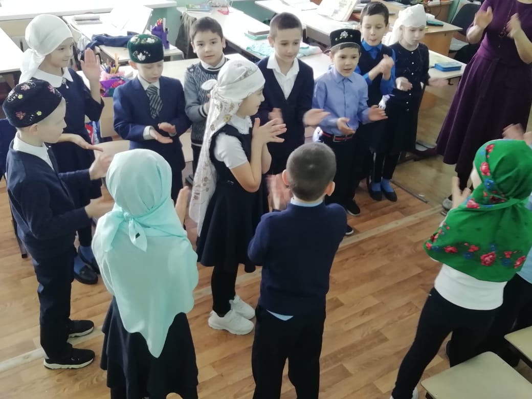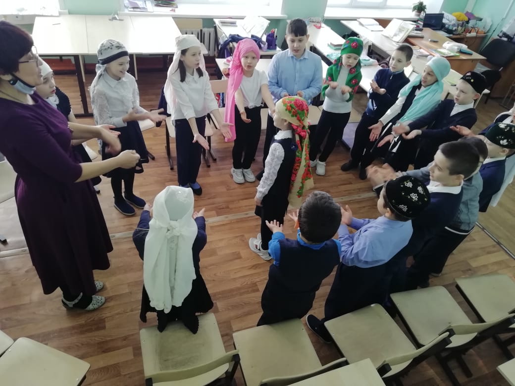 В МБОУ “Рыбно-Слободская гимназия №1” учитель родного языка Салахова Р.Г. с учениками 3А класса провела мероприятие “Народ, дорожащий родным языком, будет дорог”