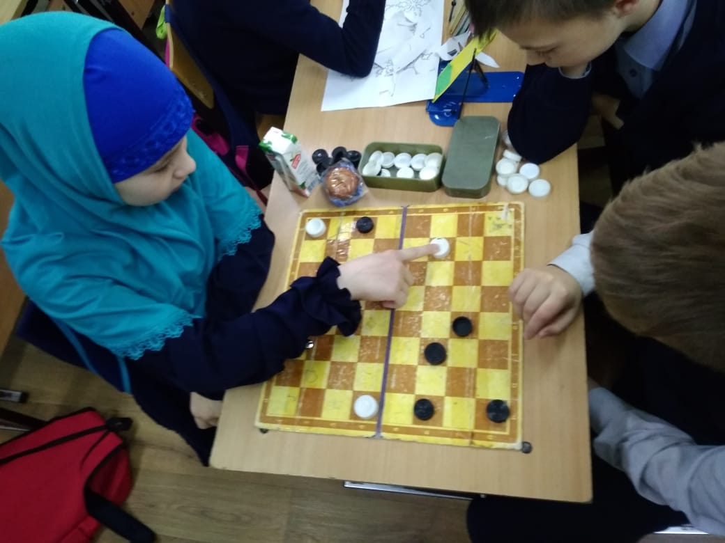 4 В сыйныф укучылары (сыйныф җитәкчесе Сәгыйрова А.И.) тәнәфесләрдә зирәклектә, логикада ярышалар. Шашка уены нәкъ менә шушы сыйфатларны үстерә.