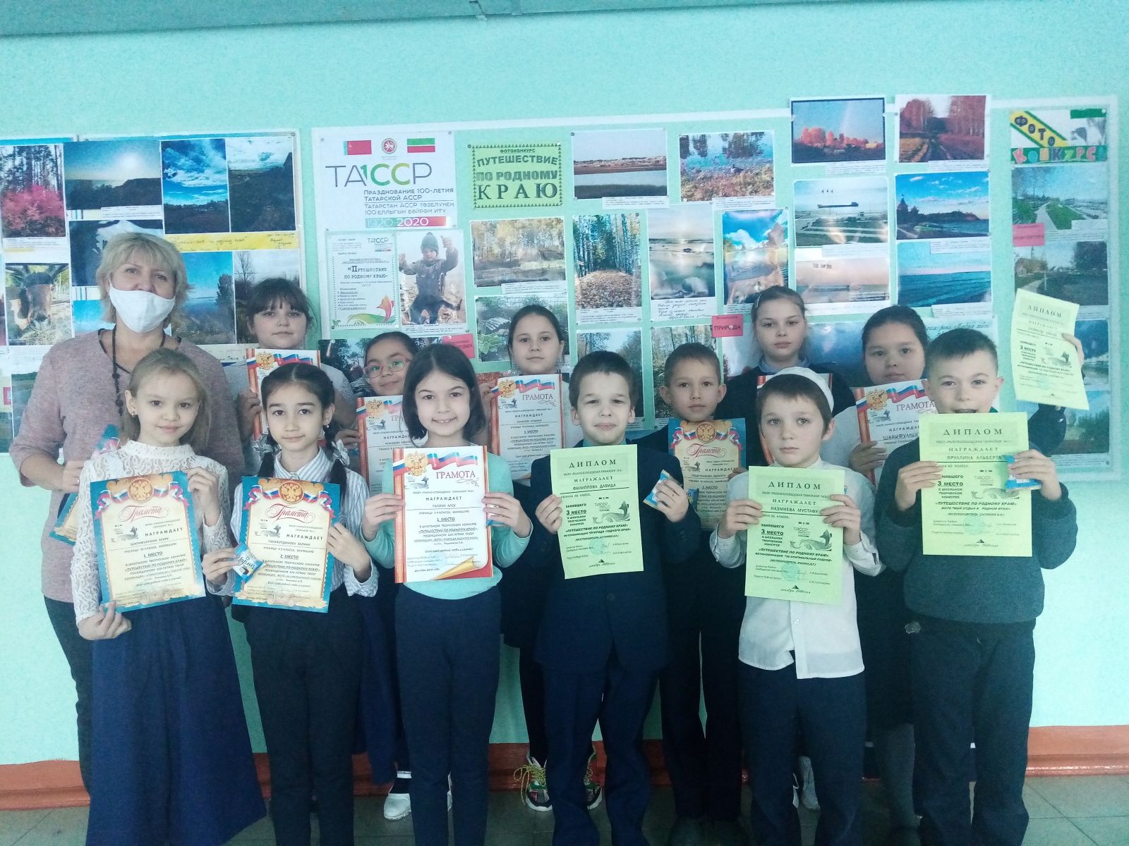 В гимназии завершился творческий конкурс фото и стихов «Путешествие по родному краю», посвященный 100-летию ТАССР. В конкурсе, организованном школьной библиотекой, приняли участие 43 ученика. Все участники получили Грамоты и сладкие призы. Около библиотеки оформлена выставка конкурсных работ. Какая красивая у нас природа! Какие замечательные места можно посетить в нашем районе!