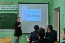 В школе состоялось награждение победителя республиканской олимпиады по защите прав победителей в номинации «За успехи в изучении основ потребительской грамотности» ученика 9б класса Закирову Г.