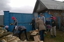 Ученики 7 б класса помогли подшефной бабушке ( Муслима апа) натаскать дров.