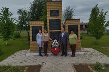 Почтили память павших земляков минутой молчания и возложили венок к памятнику погибшим участникам Великой Отечественной войны.