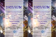 Победители конкурса” Человек и Вселенная". Учащиеся одиннадцатых классов Гатауллина Л. и Ахметханова А. были награждены дипломами и сувенирами.