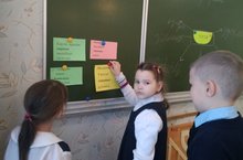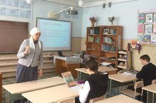 Урок по татарскому языку прошел в 7 классе. Целый урок учитель Бадрутдинова Г.Н. и обучающиеся вели диалог на татарском языке: писали под диктовку, отвечали на вопросы, работали по карточкам, составляли предложения, отгадывали ребусы, рассуждали о том, как с пользой проводить свободное время. В урок были вовлечены не только обучающиеся, но и учителя, присутствовашие на открытом уроке. Всем было интересно, легко и комфортно.