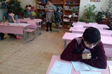 Классный час “Красота русского слова” прошёл в 6-8 классах. Обучающиеся инсценировали сказку “Приключения во сне” : мальчик во время урока сделал много ошибок в написании слов; они к нему во сне приходили в необычном облике.- “Рус теленең гүзәллеге” дигән сыйныф сәгатендә укучылар “Төштә маҗаралар” әкиятен сәхнәләштерделәр: малай дәрес вакытында сүзләрдә күп хаталар ясаган; ә төшендә аның янына сүзләр гадәти булмаган кыяфәттә килгәннәр.