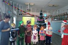 Башлангыч сыйныф укучылары өчен Яңа ел тамашасына бик күп әкият геройлаы да килде. Кыш бабай , Кар кызы белән бергә балалар Владимирова Л.А. җитәкчелегендә чыршы янында җырладылар, биеделәр, төрле ярышларда катнаштылар .