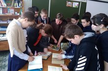 Бөек Җиңүнең 75 еллыгына һәм рус совет язучысы Евгений Иванович Носовның (1925-2002) юбилеена багышлап, авыл китапханәсе белән берлектә чара үткәрелде. Укучылар язучының тормыш юлы белән таныштылар, шарадалар ярдәмендә аның әсәрләрен искә төшерделәр, «Ак каз» әсәреннән өзек тыңладылар һәм аның буенча фикер алыштылар.Е.И.Носов-М.Горький исемендәге дәүләт премиясе, М.А.Шолохов исемендәге халыкара премия һәм Александр Солженицын исемендәге премияләр лауреаты. Аның повесть һәм хикәяләре авыл хезмәтчәннәре, табигать турында. «Балыкчы сукмагында» китабында табигать күренешләре , геройларның сугыш хатирәләре белән үрелеп бара. Кенигсберг өчен сугышта авыр яраланып, Җиңү көнен Серпухов шәһәрендәге госпитальдә каршылаган язучы соңыннан «Җиңүнең кызыл шәрабе» исемле хикәясен иҗат итә. -