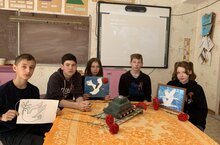 Өлкән сыйныфларда мөһим нәрсәләр турында сөйләшү Җиңү көненә, Үлемсез полкка багышланган иде. Укучылар Бөек Ватан сугышы ветераны белән интервью, "Торналар"җырының фрагментын тыңладылар.