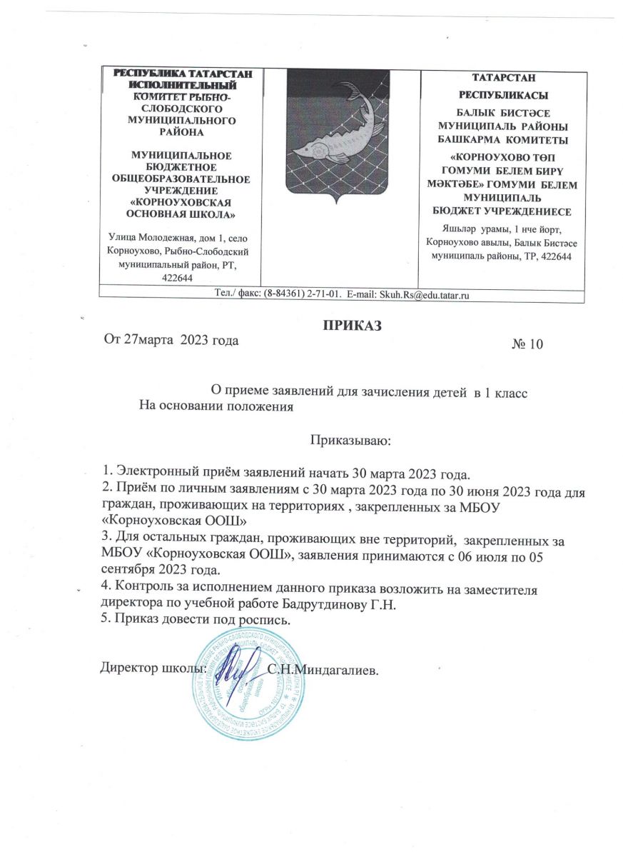Приказ о приёме заявлений в 1 класс