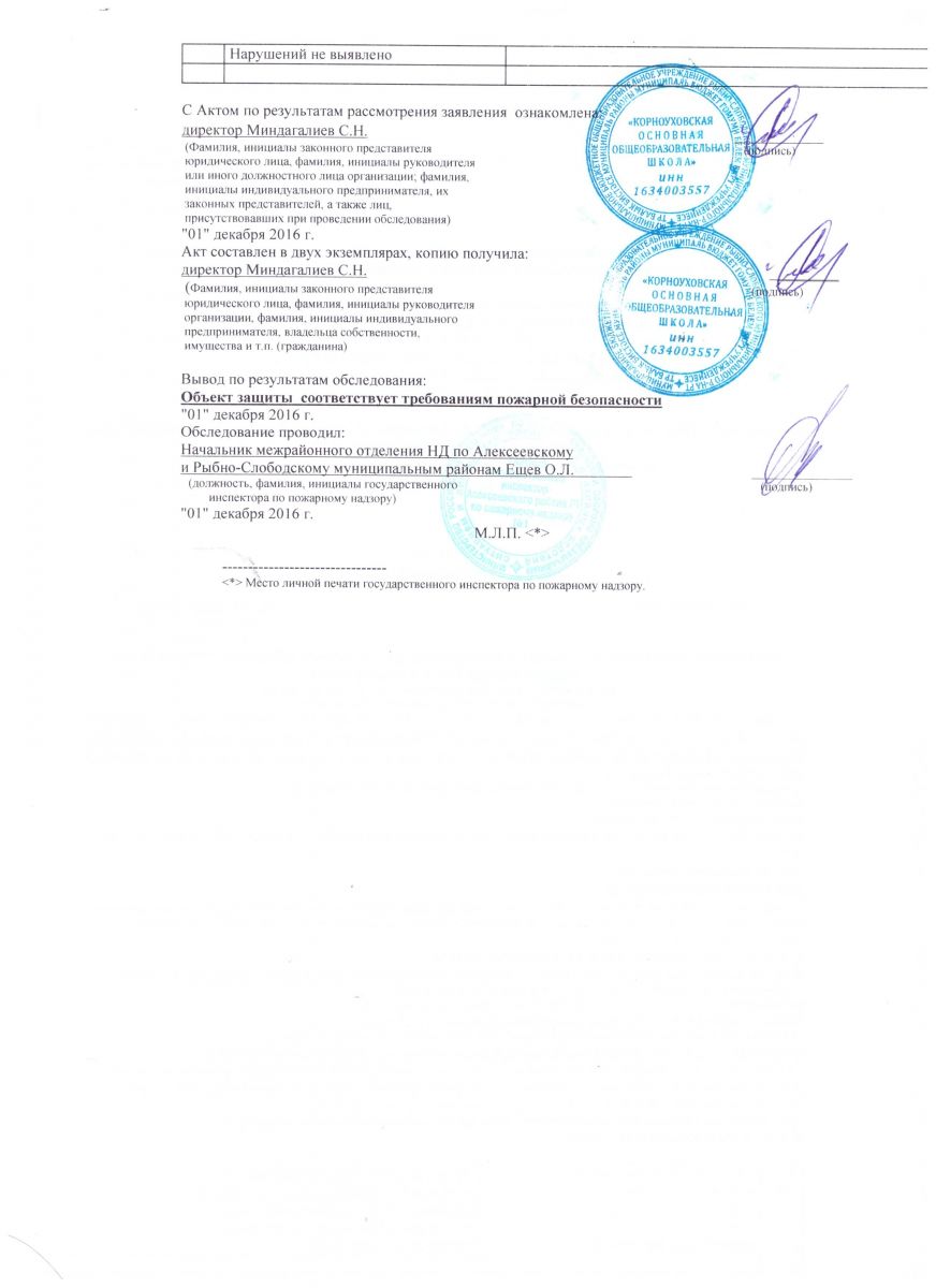 Акт обследования на пожарную безопасность