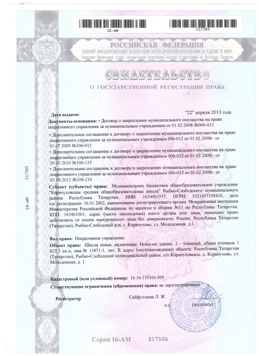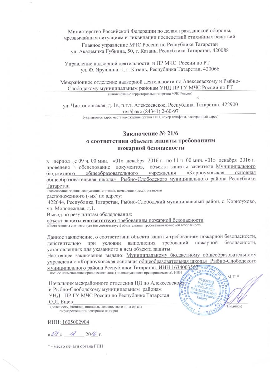 | Адрес: | 422644, Республика Татарстан, Рыбно-Слободский муниципальный район, с. Корноухово, ул. Молодежная, д. 1- 422644 , Татарстан Республикасы Балык бистәсе муниципаль районы Корноухово авылы, Яшьләр урамы , 1 |