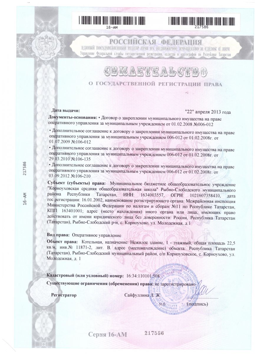 Свидетельство о государственной регистрации на котельную