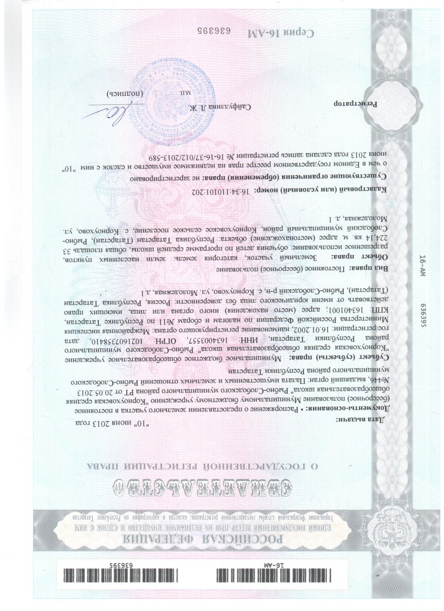 Cвидетельство о рег. права на землю