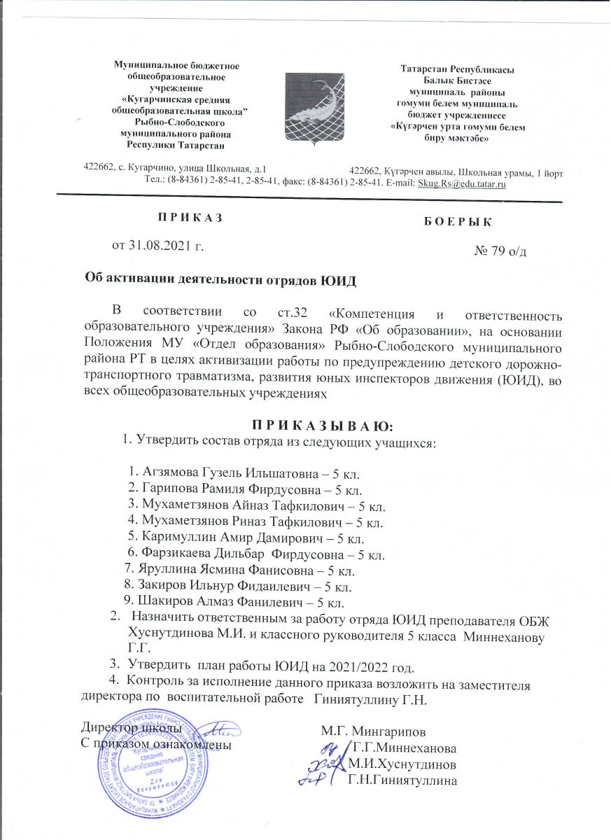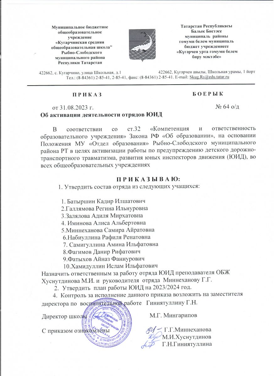 Приказ об активации отряда ЮИД на 2023-24 уч.год