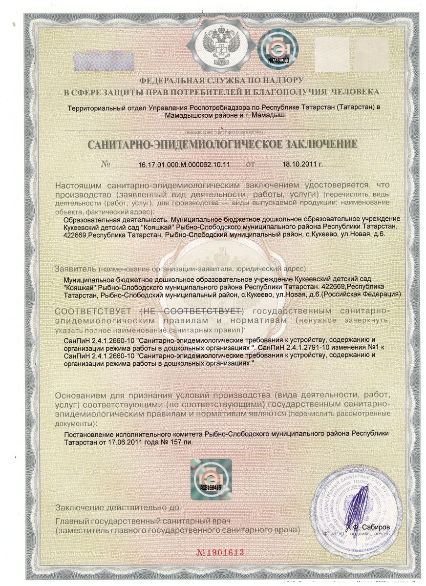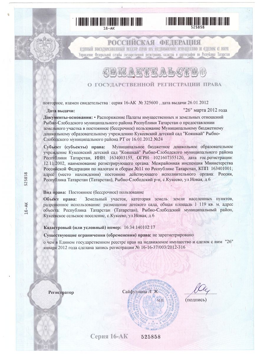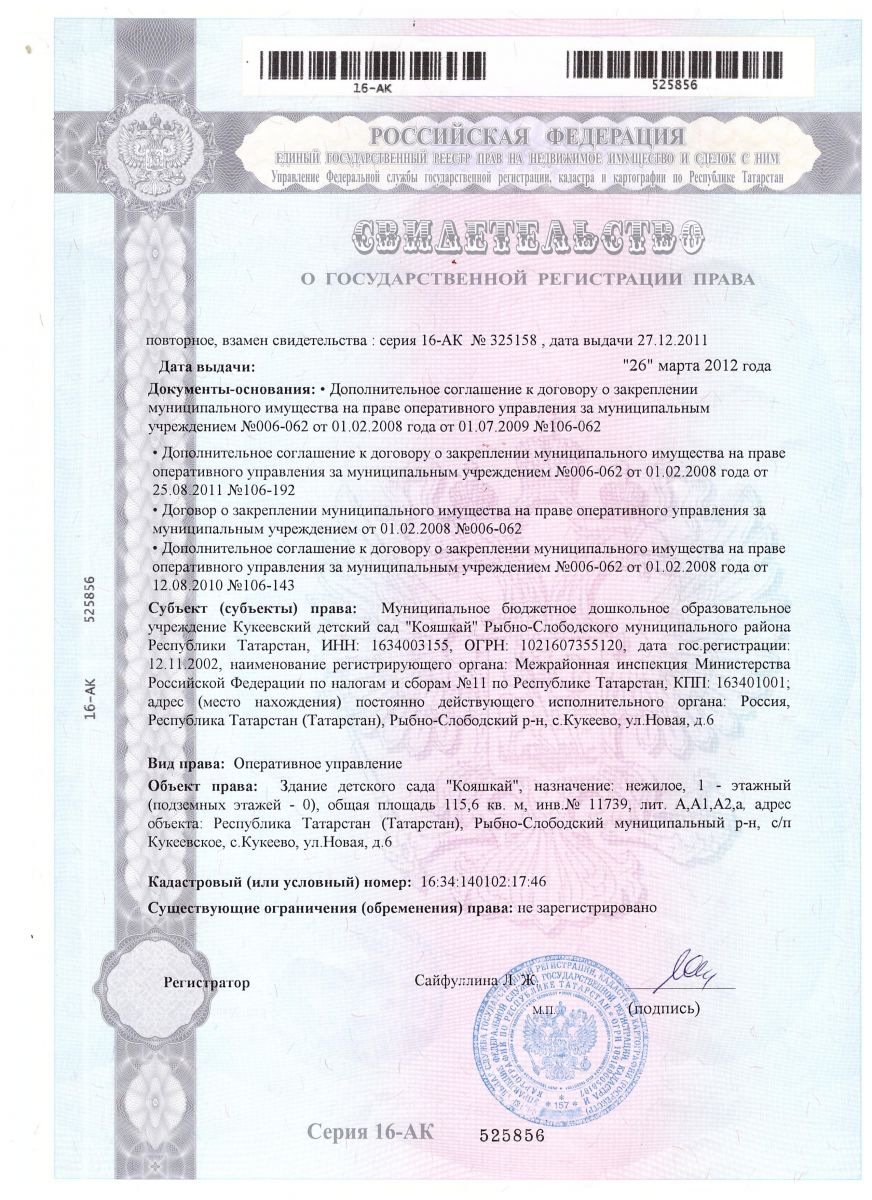 | Короткое название: | МБДОУ Кукеевский детский сад "Кояшкай" Рыбно-Слободского муниципального района РТ/ Күки "Кояшкай" балалар бакчасы |