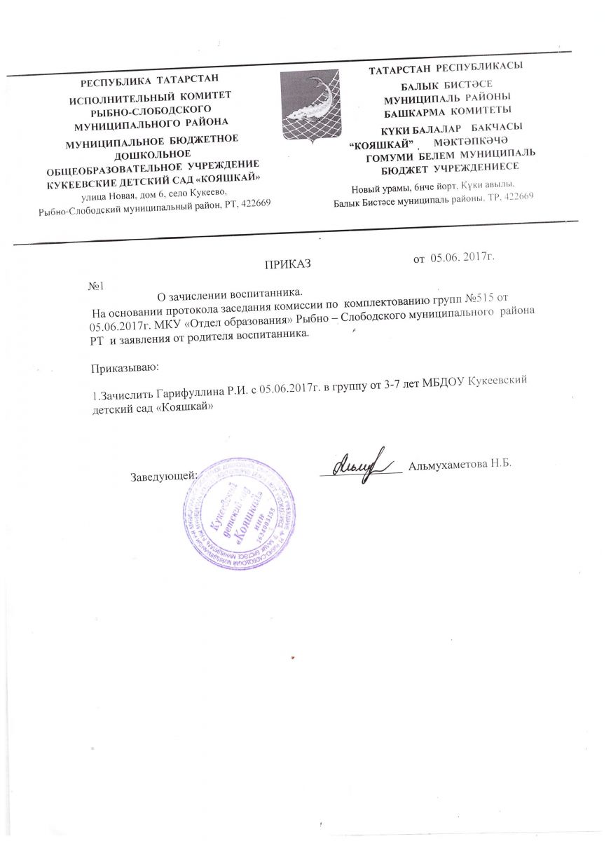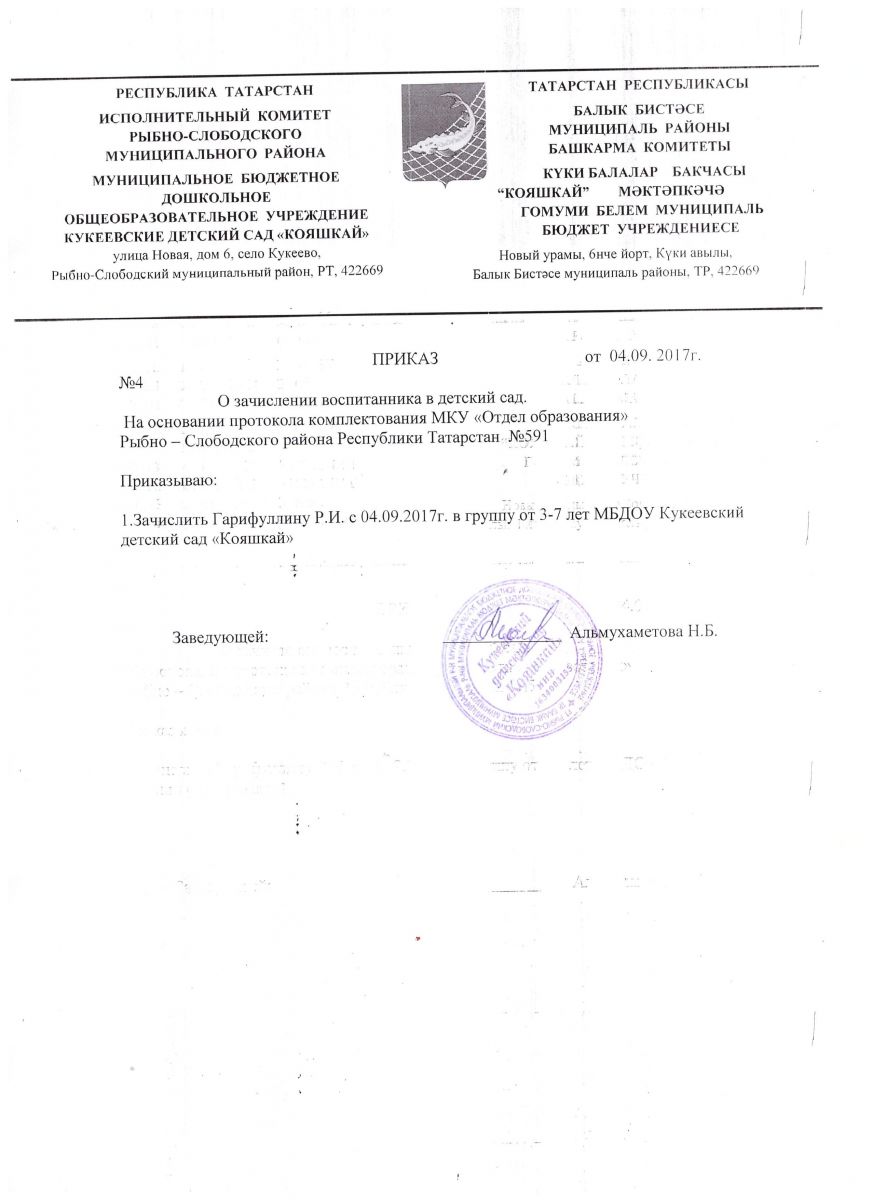 Приказы по зачислению детей/Балаларны кабул итү буенча боерыклар
