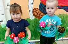 В рамках экологического проекта в младшей группе было проведено занятие “Мухоморчики”. На занятии воспитатель подвела детей к мысли , что можно дать новую жизнь пластиковым бутылкам, изготовив из них поделки, например, грибы. Дети с удовольствием расписывали формы мухоморов.
