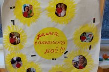 К празднику "День матери" воспитанники младшей разновозрастной группы совместно с воспитателем подготовили фотоколлаж поздравление для мам "Мама солнышко моё",который будет украшать группу.