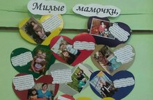 В старшей разновозрастной группе провели занятие фотоколлаж "Для милых мамочек".Ребята с удовольствием приклеивали фотографии своих мам на заготовленные из цветного картона сердечки. Все дети составили рассказ о своей маме,воспитатель помогла детям сделать запись,и к каждой фотографии распечатали мини сочинения детей о мамах.Фотоколлаж получился ярким с интересным содержанием.