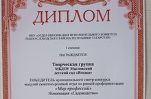 "Һөнәрләр иле" дип исемләнгән муниципаль конкурста безнең "Ягодка" балалар бакчасы коллективы "Бакчачылык" номинациясендә 1нче урынга лаек булды! Котлыйбыз! Афәрин!