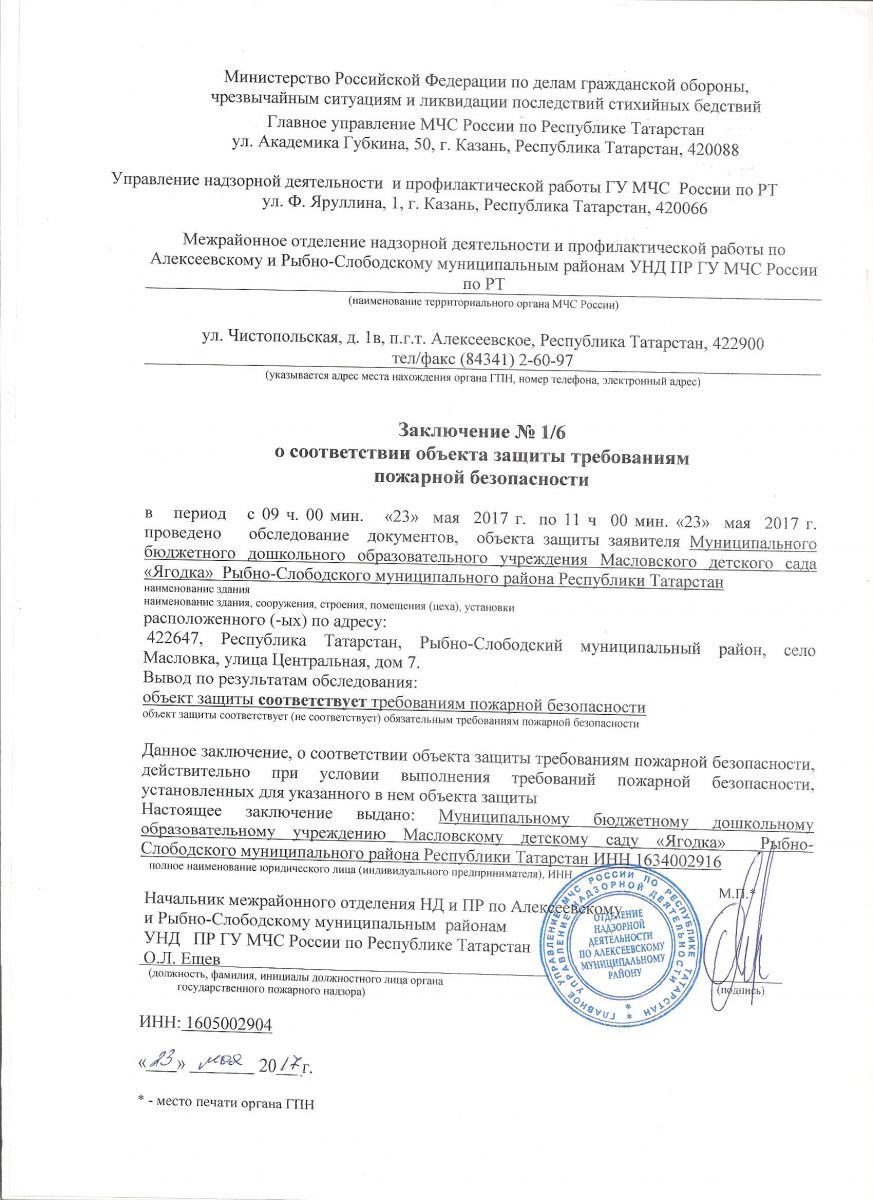 Заключение о соответствии объекта защиты требованиям пожарной безопасности