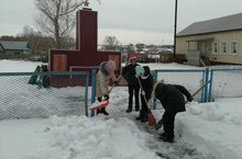Вот и сегодня обучающиеся 6 класса под руководством классного руководителя Гайнуллиной Г.И. очистили прилегающую территорию у обелиска от снега.