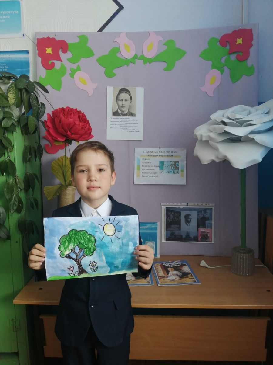 Әлеге чарага бик күп матур иҗади эшләр әзерләнде. Тукай әсәрләре буенча рәсем бәйгесендә дә укучылар теләп катнаштылар. Чын рәссамнарча зәвык белән ясалган рәсемнәр күпләребезне сокланырга мәҗбүр итте.