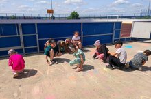 1 июнь - балаларны яклау көне! Бу көнне балалар "Таң" сәламәтләнедерү лагерендә "Бәхетле балачак" темасына асфальтка рәсем ясадылар. Укучыларыбыз төрле һөнәрләрен күрсәттеләр.