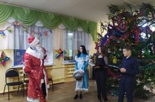 Кыш Бабай белән Кар Кызы 1-4 сыйныф укучыларына Яңа Ел күчтәнәчләрен таратып йөрделәр.