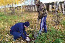 с учениками 10 классов посадили кустарники, ели, калины.