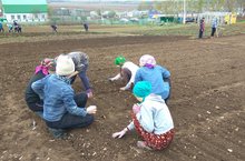 Мәктәп яны тәҗрибә участогында утырту эшләре башланып китте. Укучылар җирне казып, тырмалап чәчәк, кишер, суган,чөгендерләр чәчтеләр.