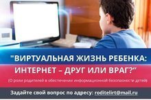 19 января 2018 года с 12:00-13:30 проводится Республиканское родительское интернет-собрание по теме "Виртуальная жизнь ребенка: друг или враг?". Онлайн трансляцию будет вестись на сайте киу.рф.