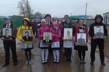 "Үлемсез полк" акциясе дәвам итә. Безнең мәктәбебездә дә укучылар үзләреннән бабалары фотосурәтләрен тотып парадка чыктылар