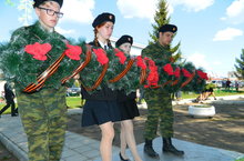 студенты техникума на возложении Гирлянды 9 мая памятнику Участникам ограниченных контингентов Советских войск