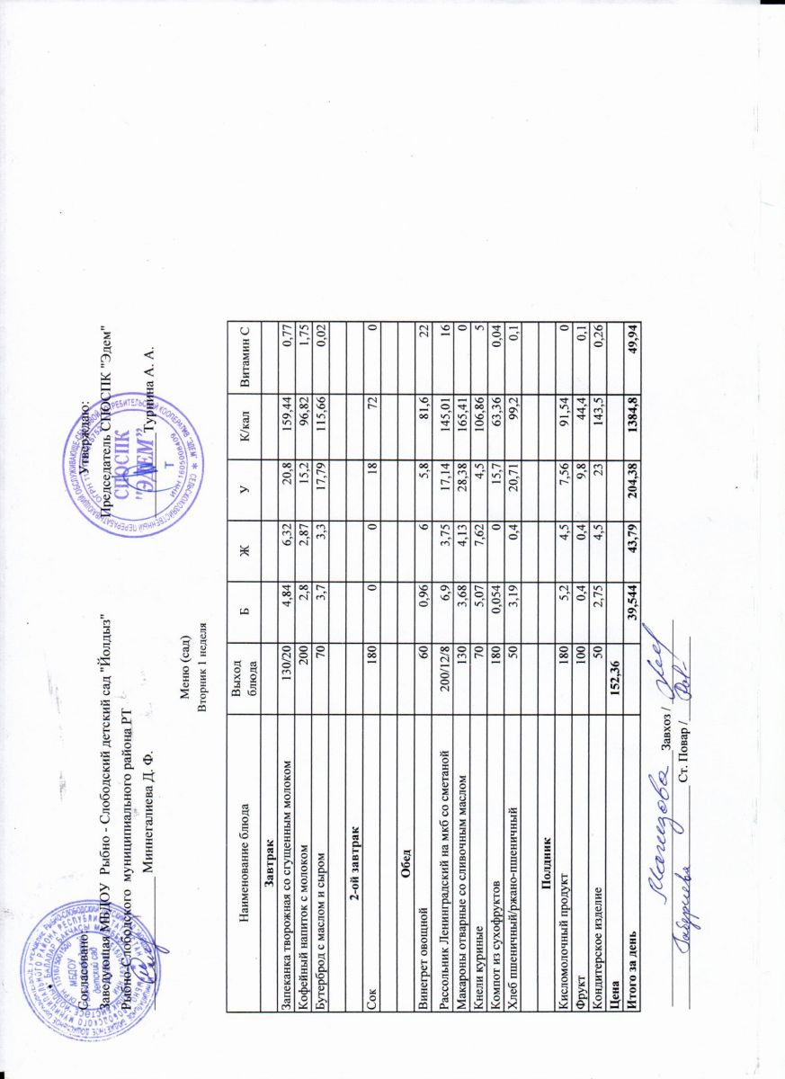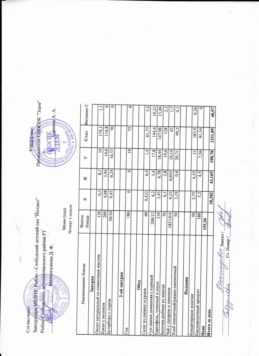Меню(сад) четверг первая неделя 07.03.2024 г.