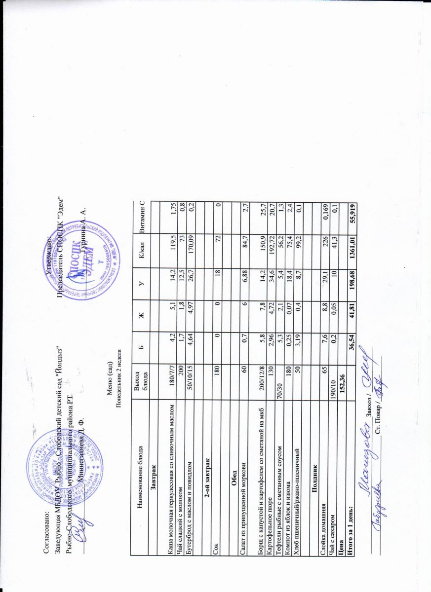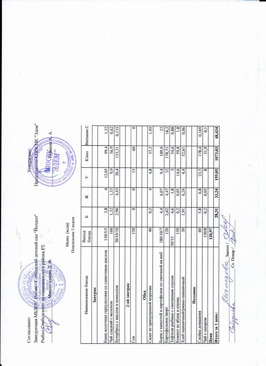 Меню (сад) понедельник вторая неделя 11.03.2024