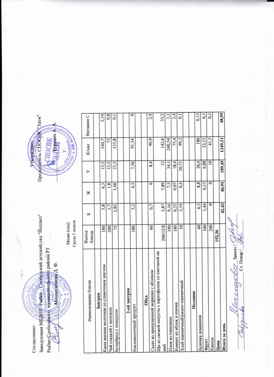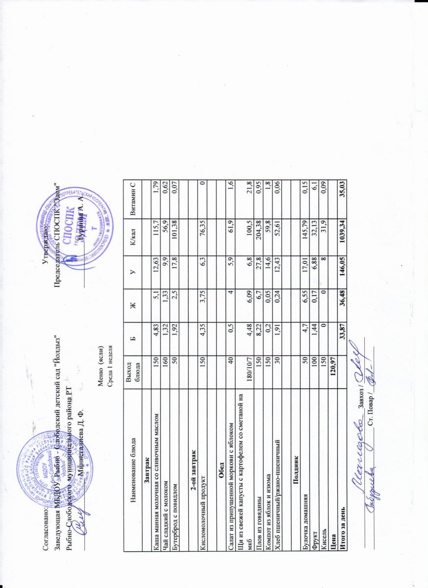 Меню(сад) среда вторая неделя 13.03.2024 г.