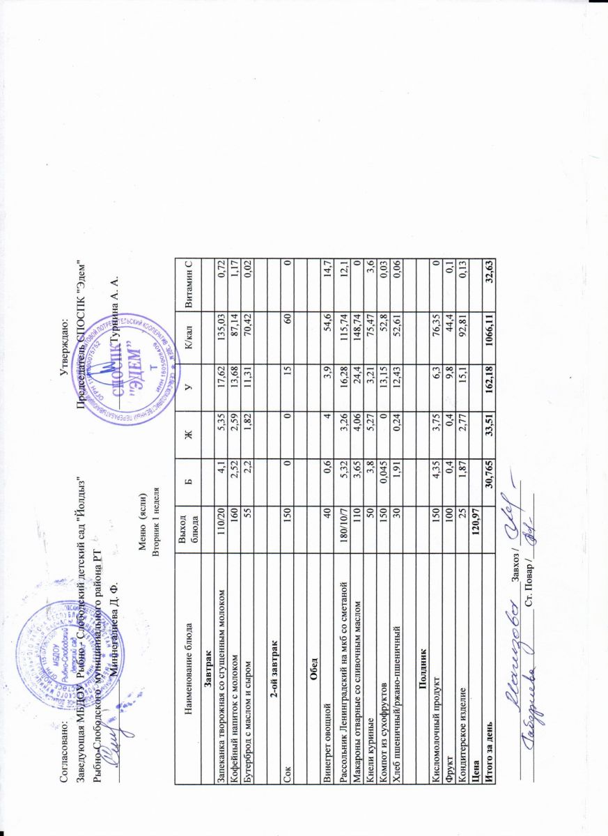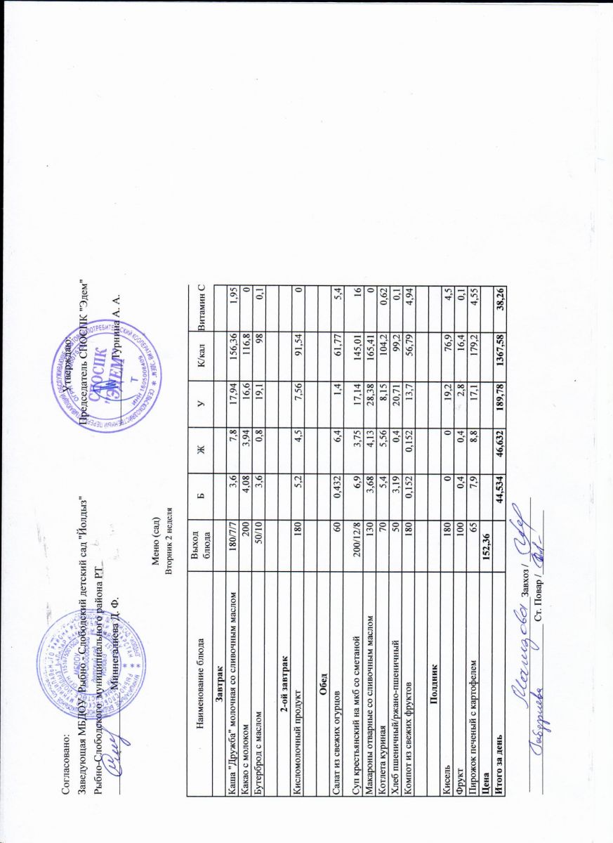 Меню (ясли) вторник вторая неделя 12.03.2024
