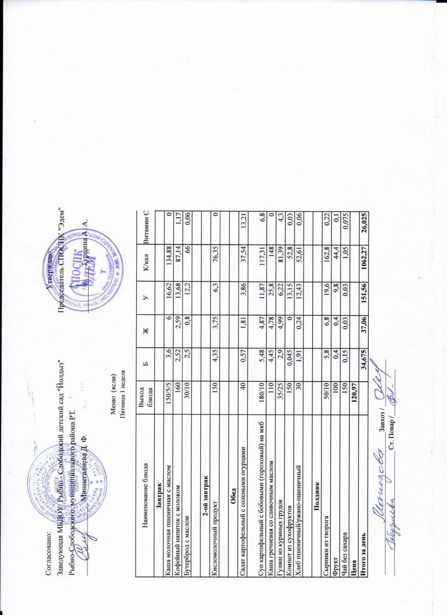 Меню(ясли) пятница вторая неделя 15.03.2024 г.