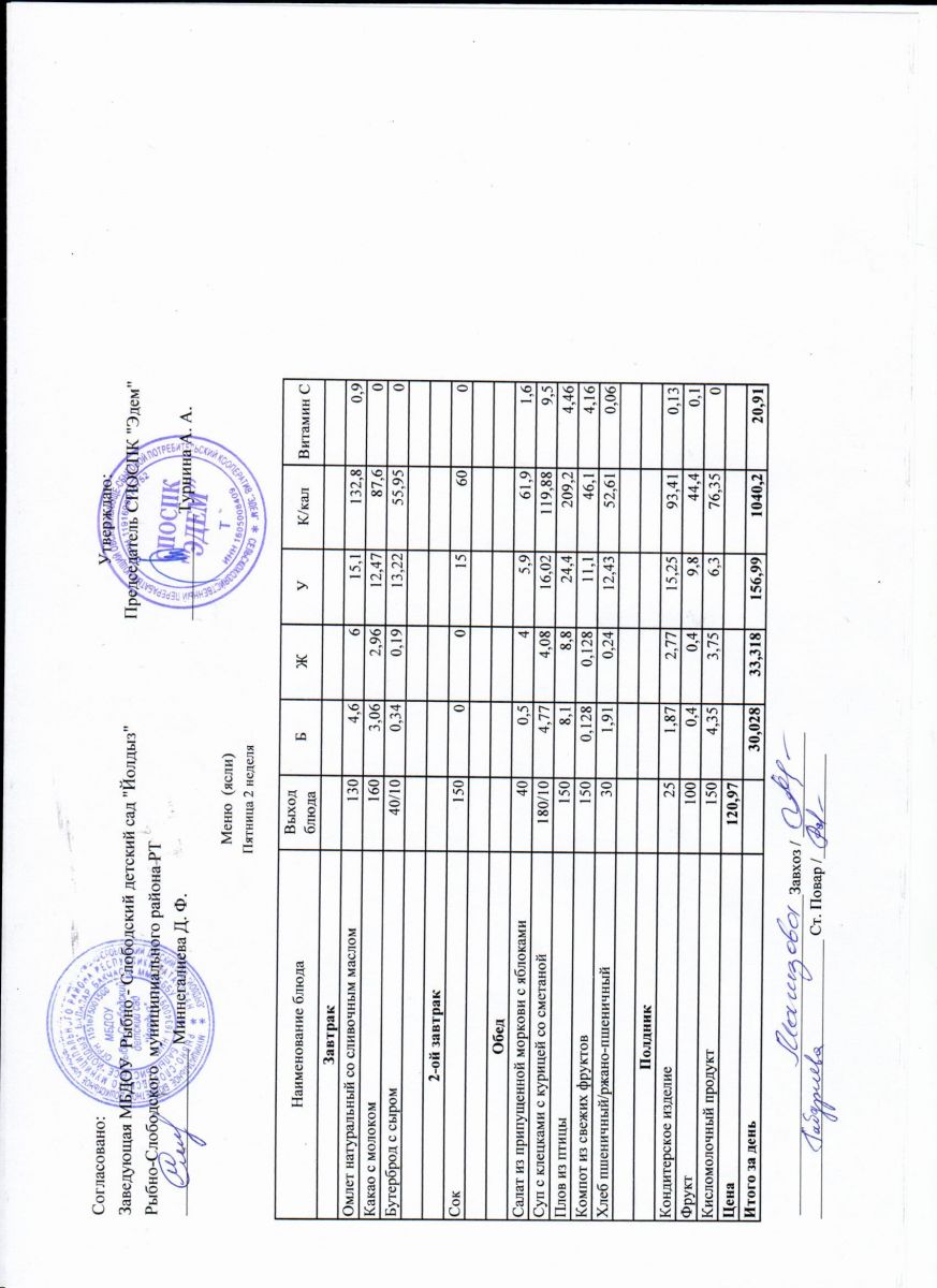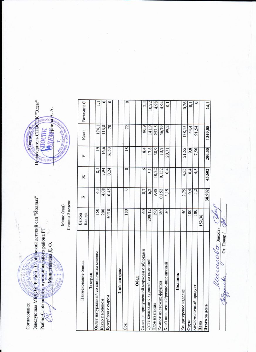 Меню(сад) пятница вторая неделя 15.03.2024 г.