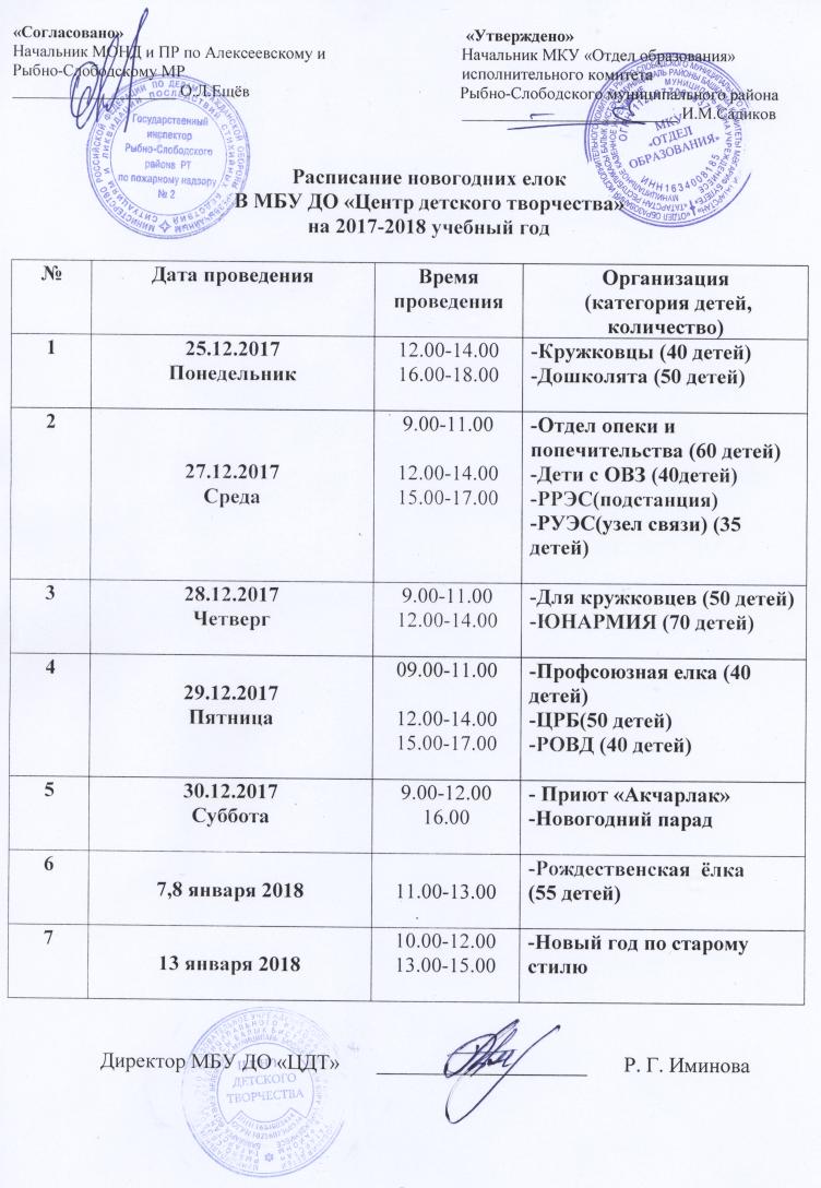 График проведения новогодних елок 14.12.2017