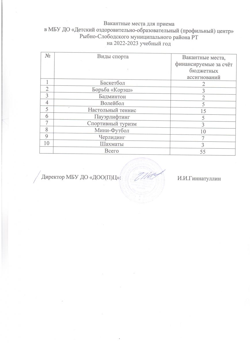 Вакантные места в 2021-2022 учебном году