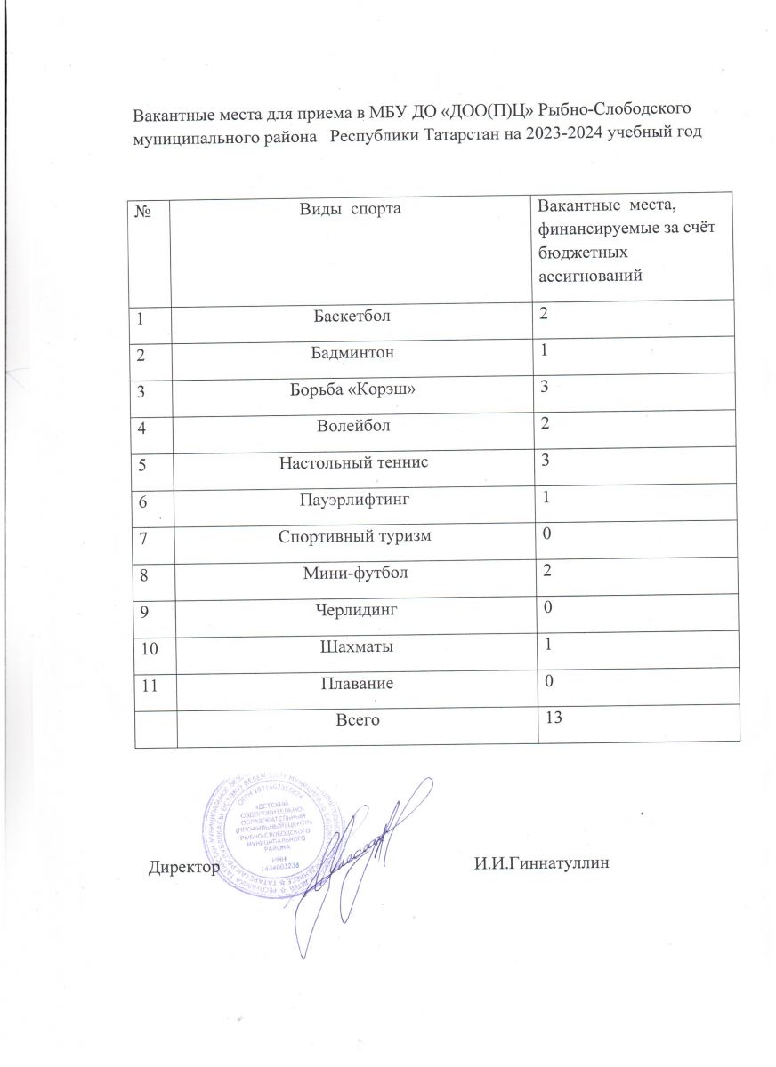 Вакантные места в 2023-2024 учебном году