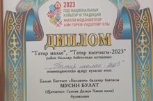 «Татар малае - 2023», – с гордостью может сказать про воспитанника нашего детского сада Мусина Булата который оказался победителем конкурса. Мероприятие посвящено Году национальных культур и традиций./ «Татар малае - 2023", – дип горурланып әйтә алабыз балалар бакчасында тәрбияләнүче Мусин Булат турында. Ул конкурста җиңүче булып чыкты. Чара милли мәдәниятләр һәм гореф-гадәтләр елына багышланган.