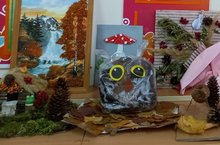 Балаларга ата-аналар белән бергәләп табигый материалдан һәм көз бүләкләреннән төрле эшләнмәләр, әзерләргә тәкъдим ителде. Әти-әниләрнең битараф калмавы һәм балалар белән бергә кул эшләре әзерләүдә актив катнашуы сөендерде. Күргәзмәдә катнашучылар үзенең фантазиясе, оригинальлеге һәм иҗади сәләтләре белән гаҗәпләндерде.