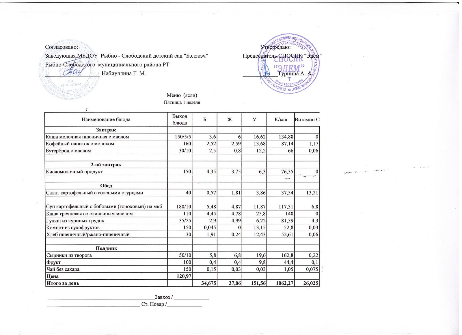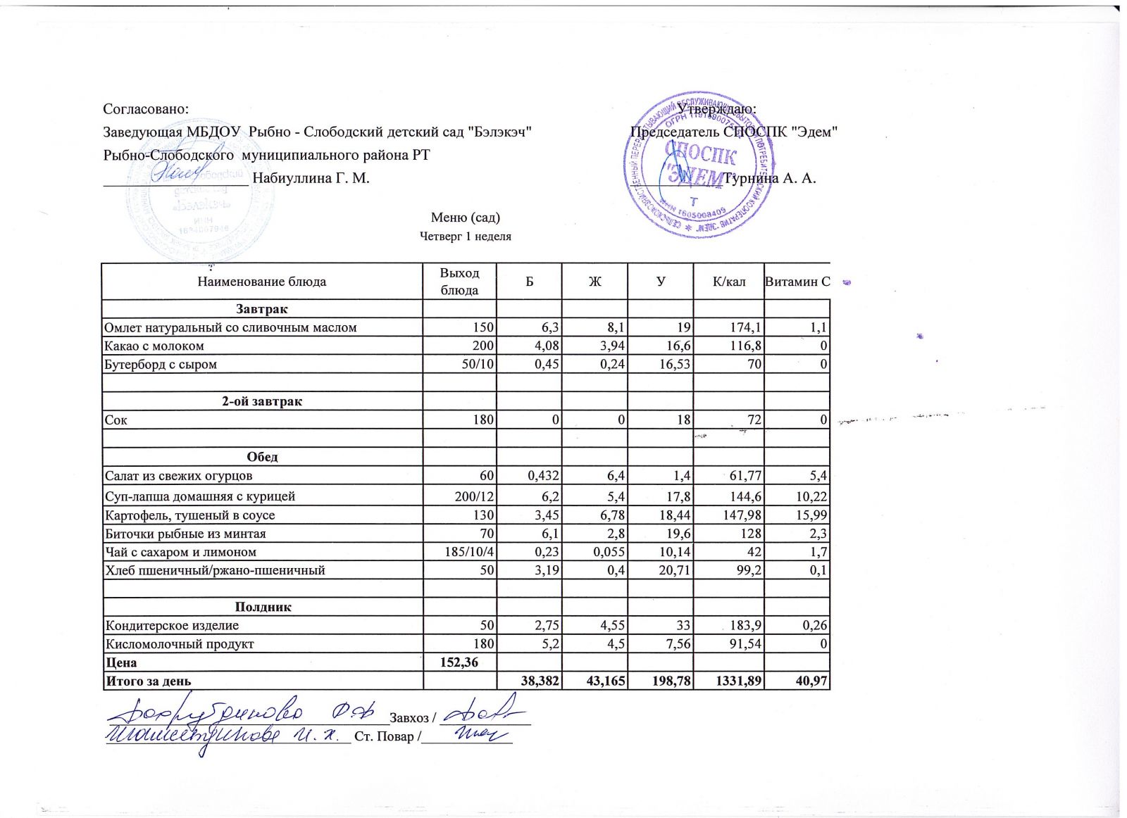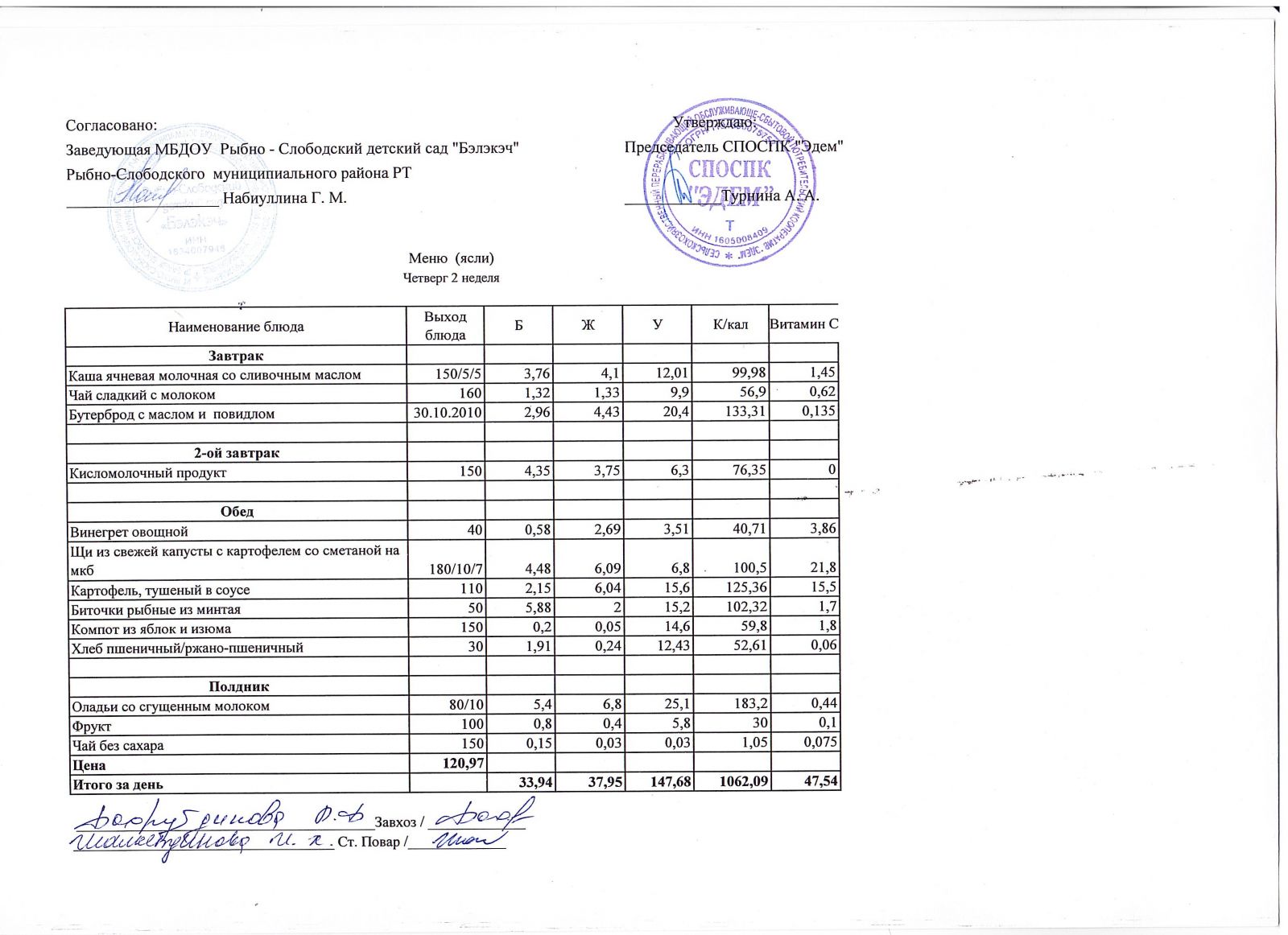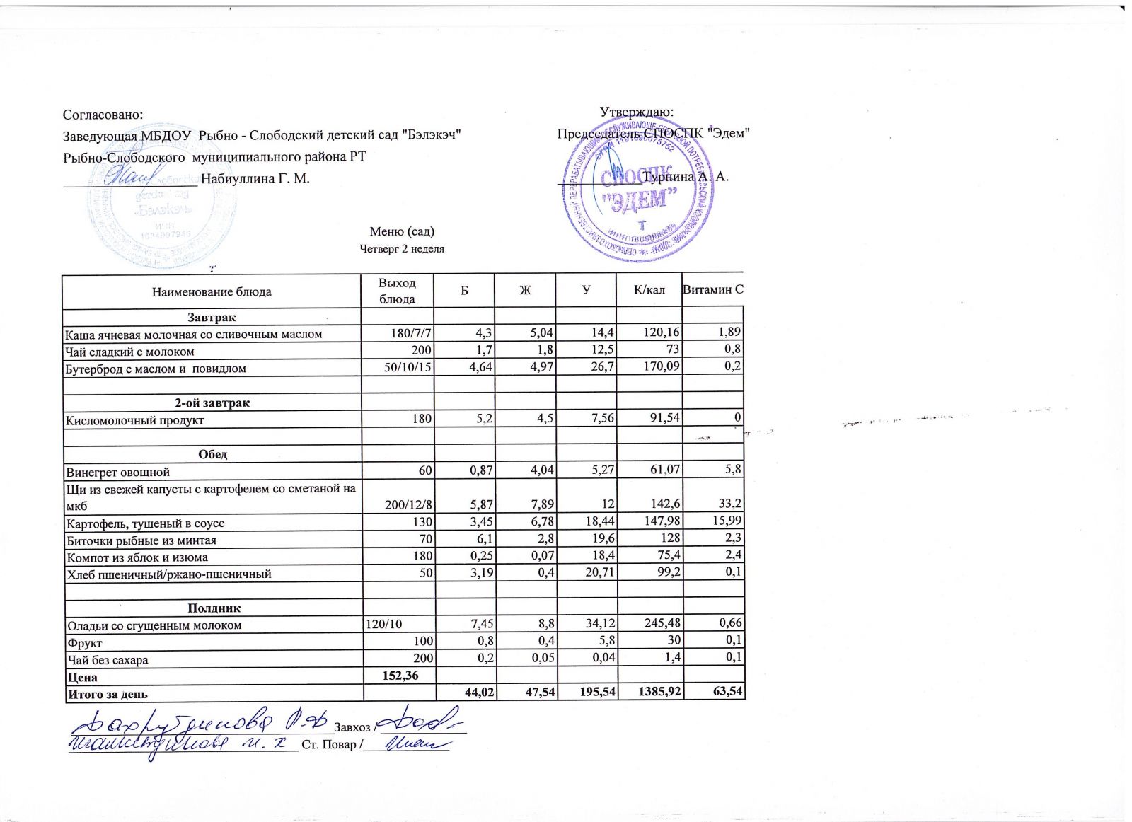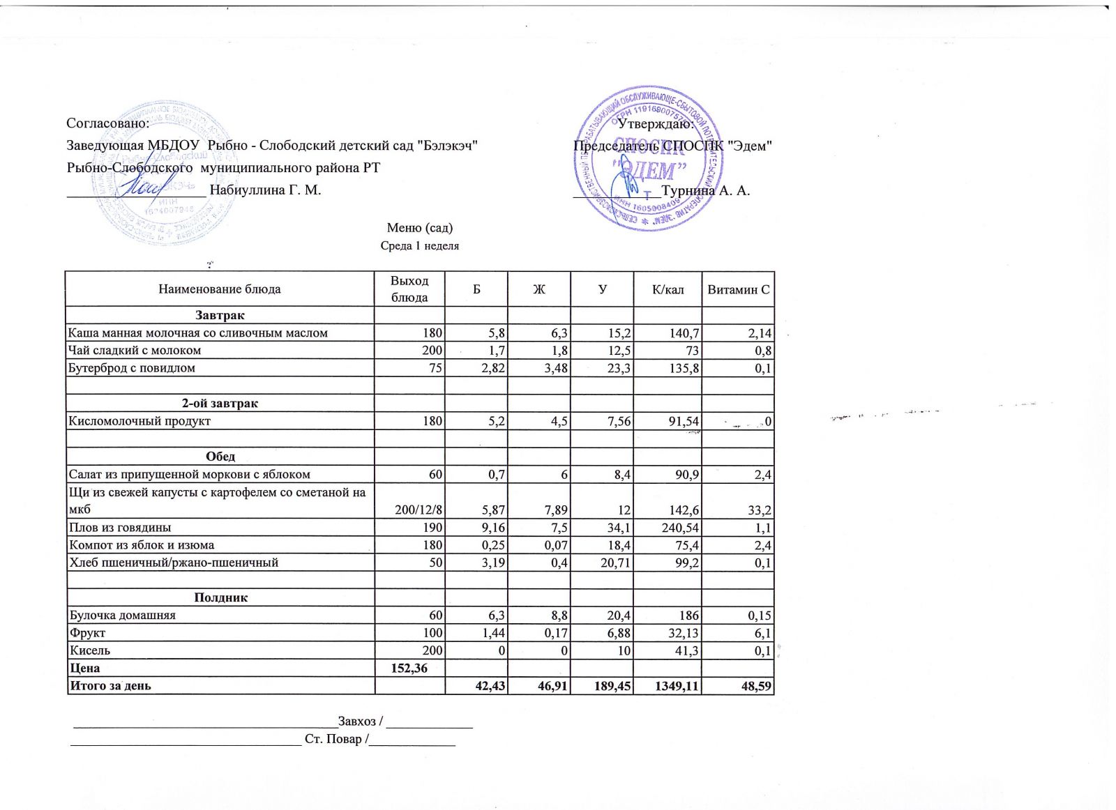 Меню(ясли) четверг вторая неделя 14.03.2024
