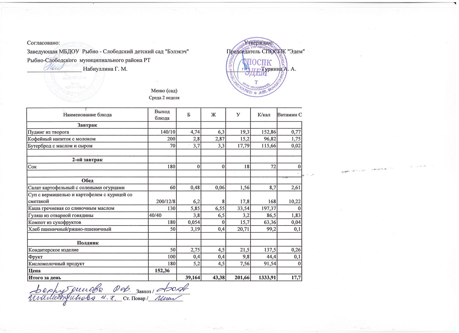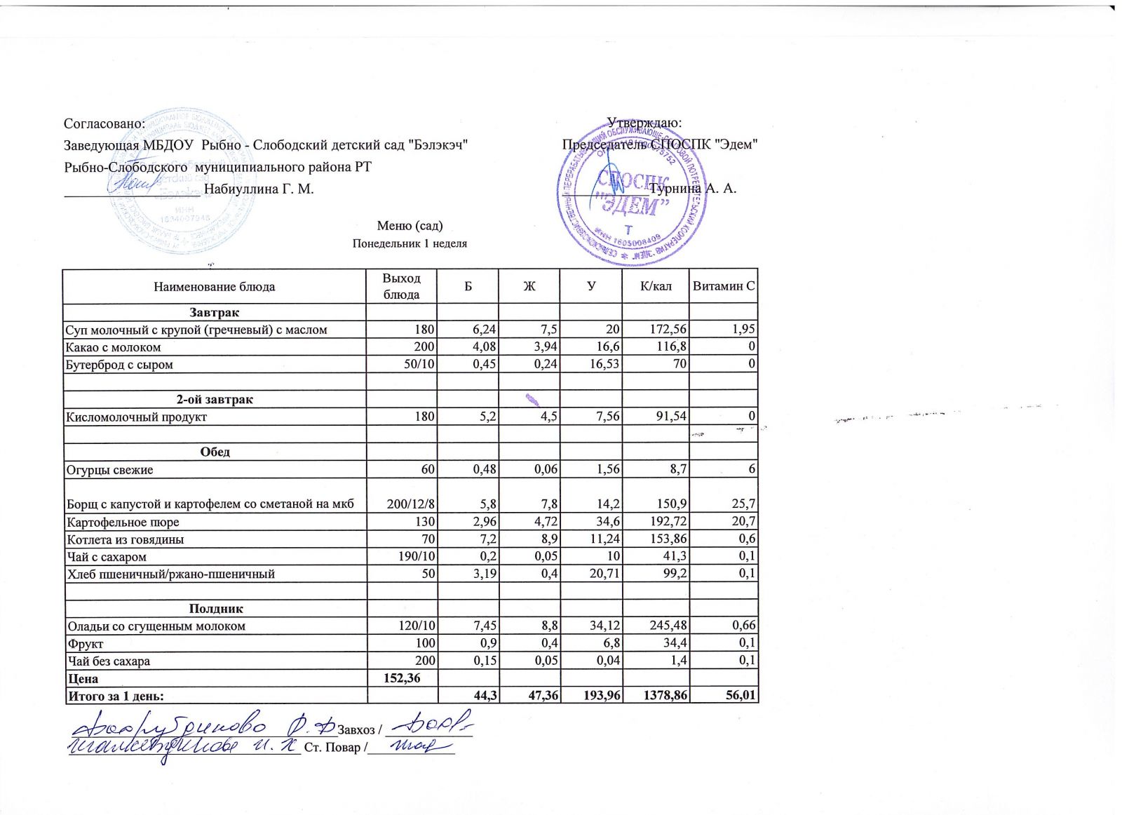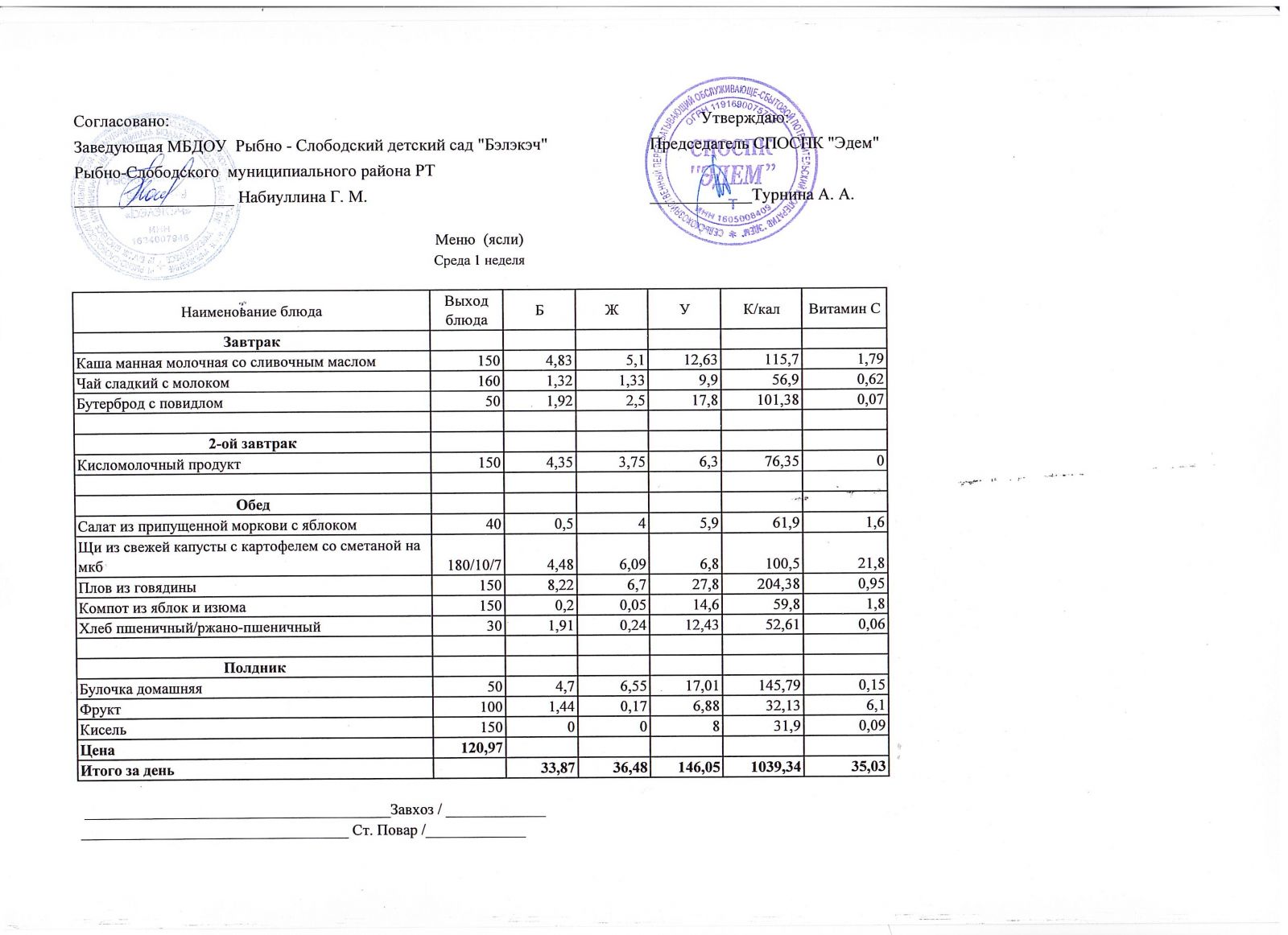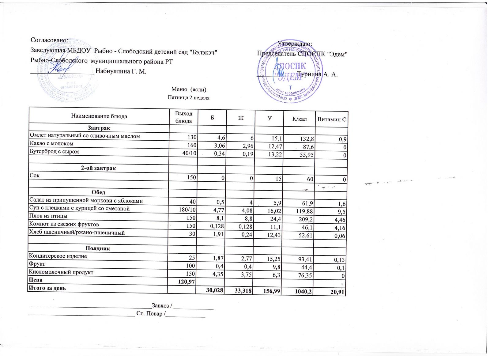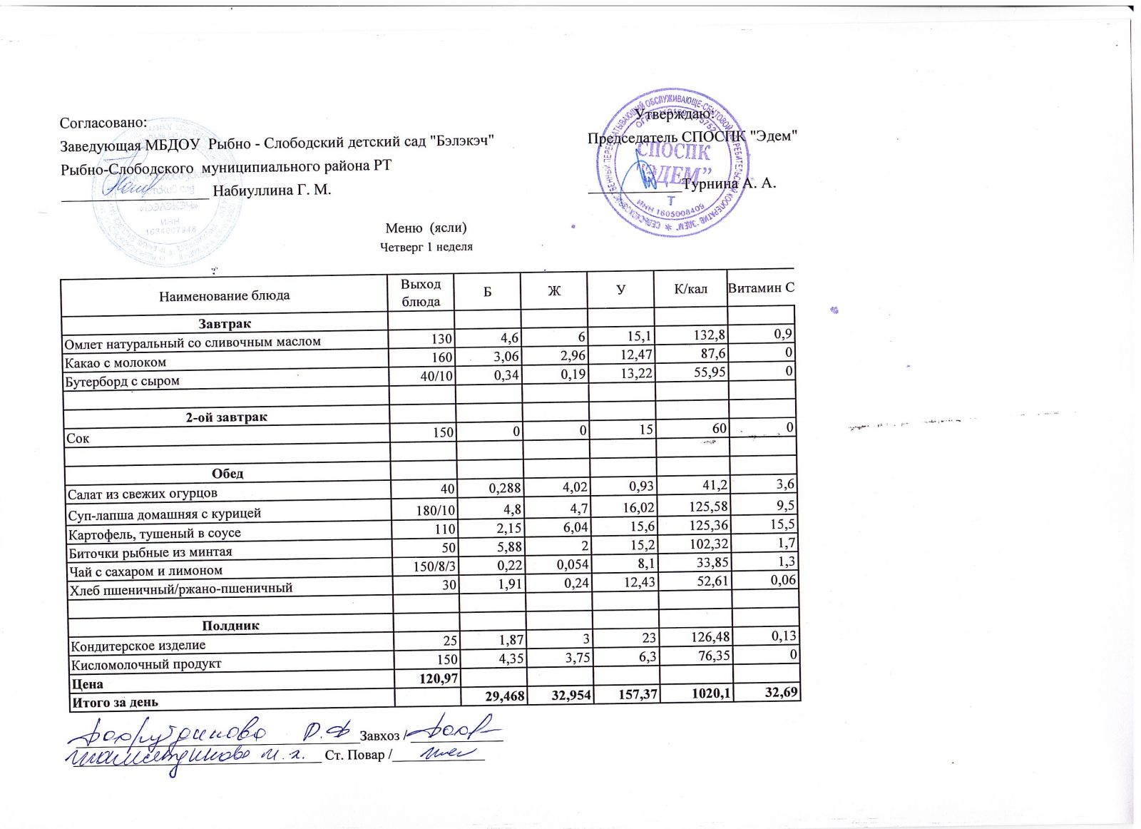 Меню(ясли) четверг вторая неделя 14.03.2024